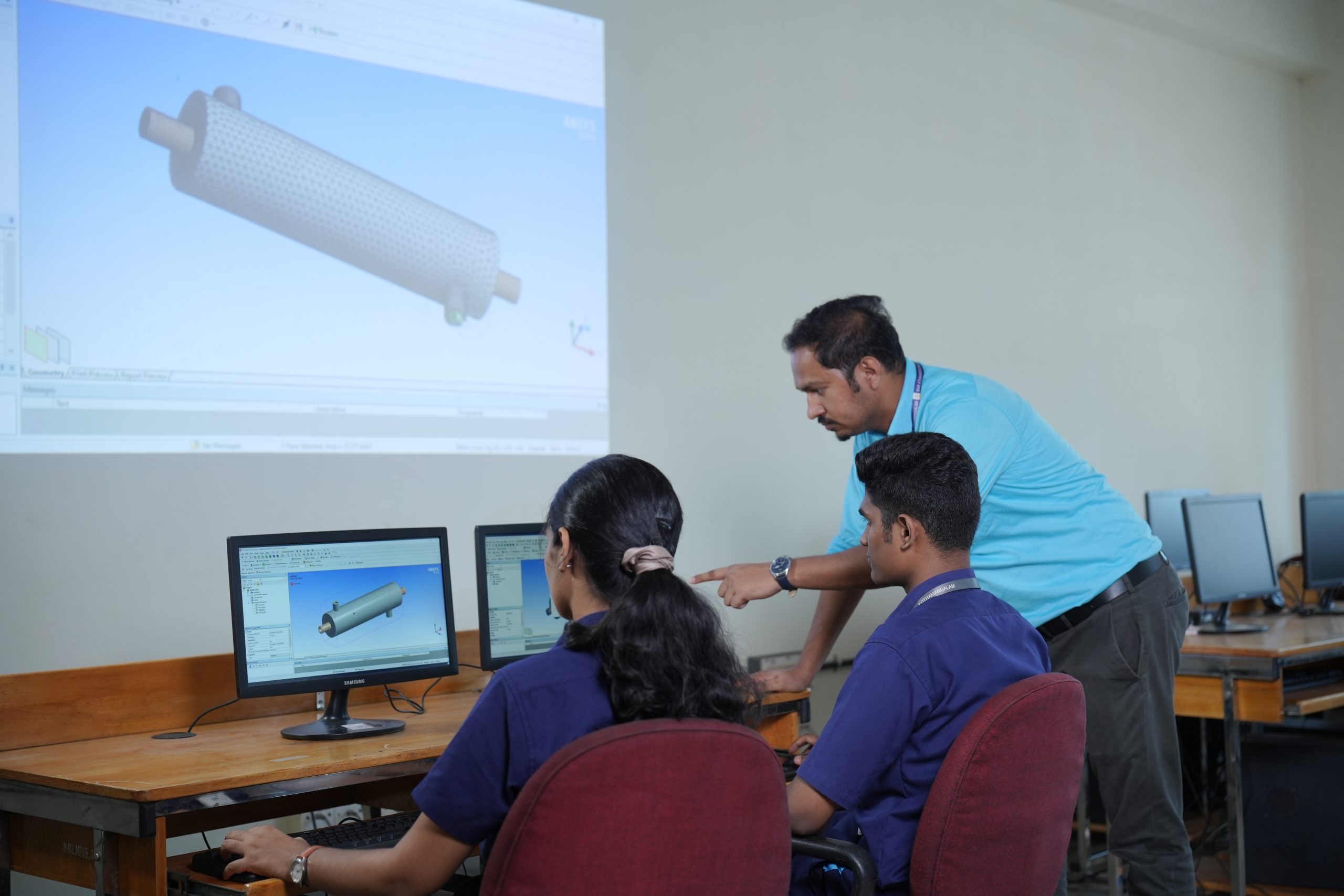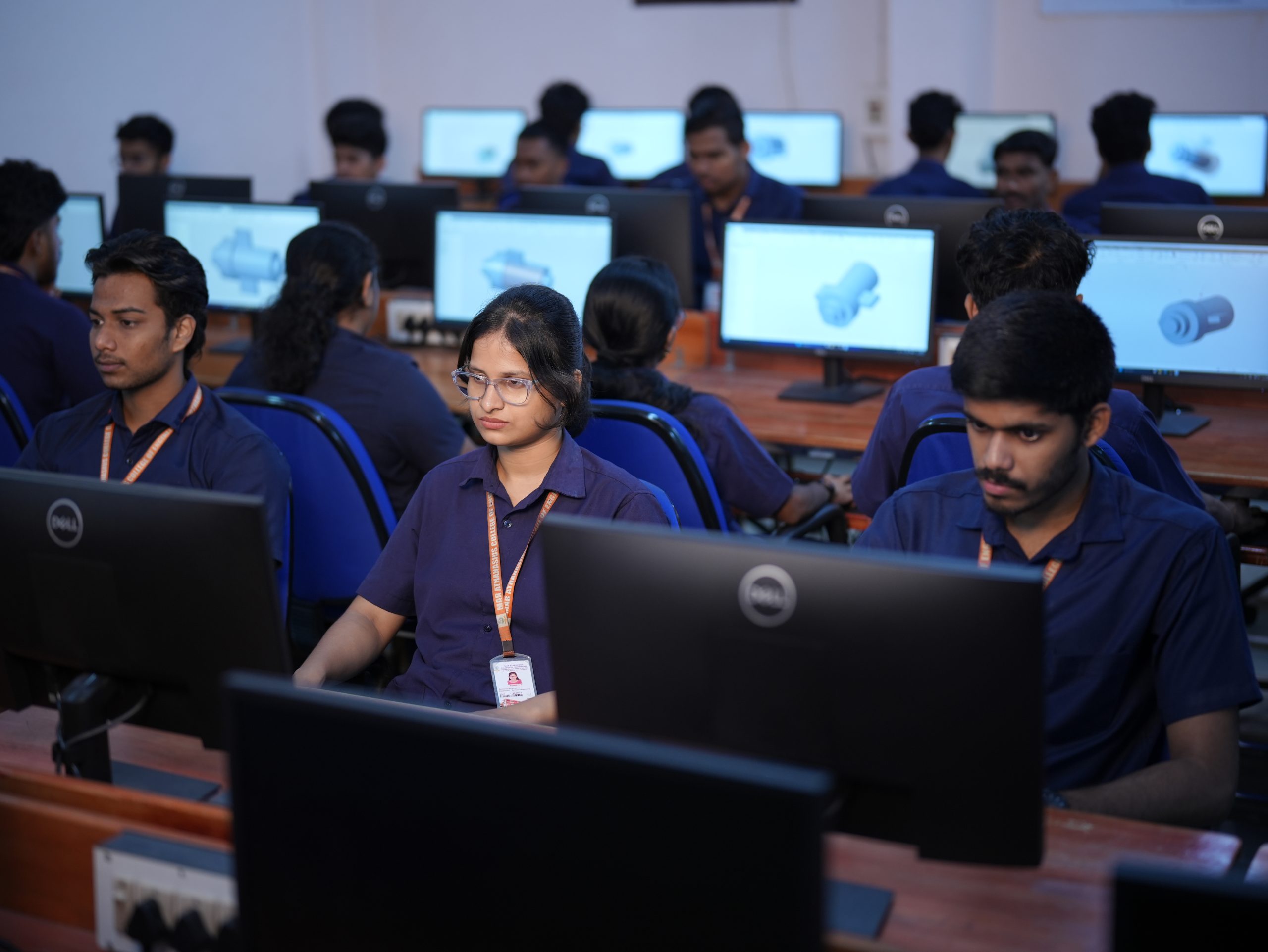 The Computer Aided Design & Analysis Laboratory equips students with skills in 2D drafting, 3D modelling, simulation, and engineering analysis using tools like AutoCAD, Fusion 360, Creo, ANSYS etc. It enables students to create 2D drawings, 3D models, and assemblies essential for product design and development. Students also learn to perform structural and dynamic analysis for evaluating design performance under real-world conditions. The lab enhances design visualization skills and prepares students for modern engineering design practices.