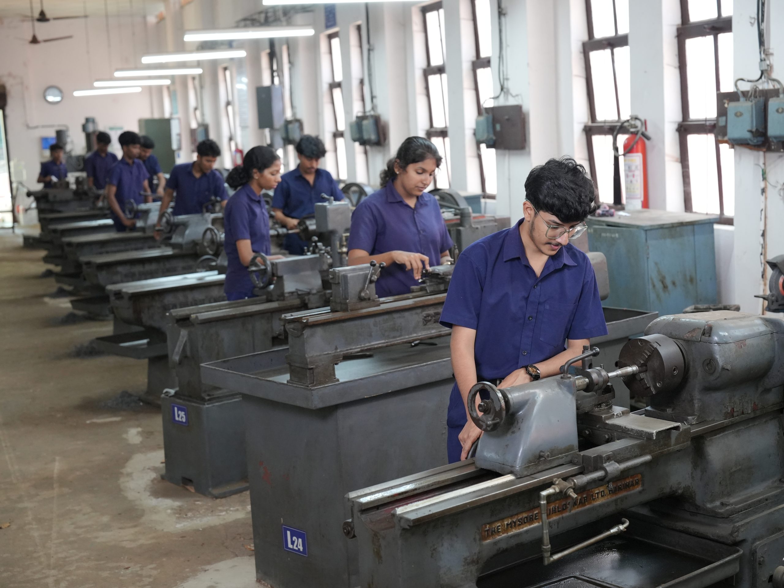 In Machine Shop-I, students develop their working skills and study metal cutting principles in machine tools like Lathe, Drilling machines, etc. Students are also acquainted with various measurement devices and study standards of measurements in metrology.