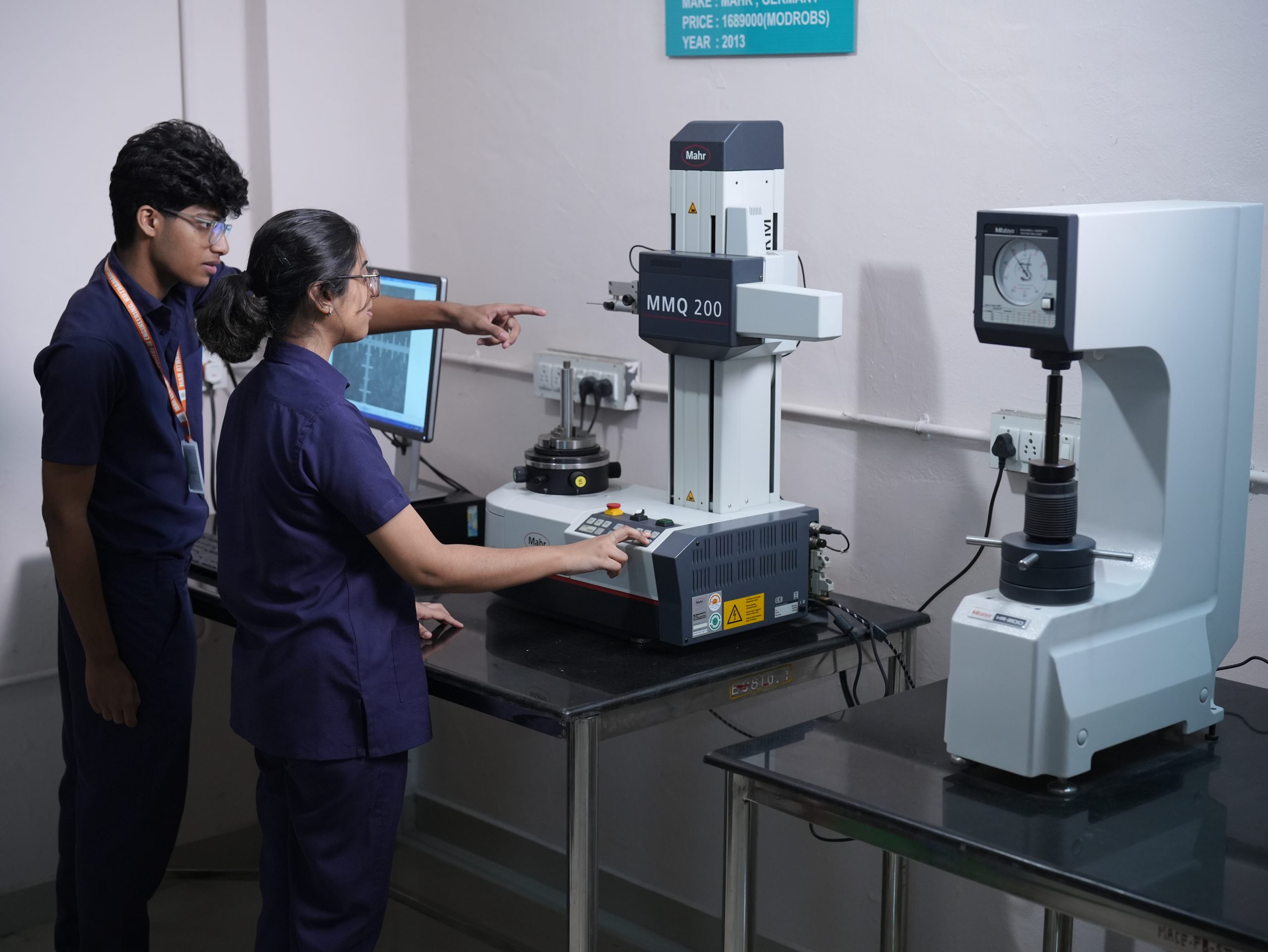This lab comprises equipment like Toolmakers microscope, Autocollimator, Pneumatic Comparator, Stroboscope, Deadweight pressure gauge tester, Planimeter, LVDT Apparatus, Vernier Height Gauge, Metallurgical Optical Microscope, Surface Plate, Profile Projector, etc. Sophisticated precision measuring instruments like Rockwell Hardness Testing Machine and Form Measurement Machine are also included.